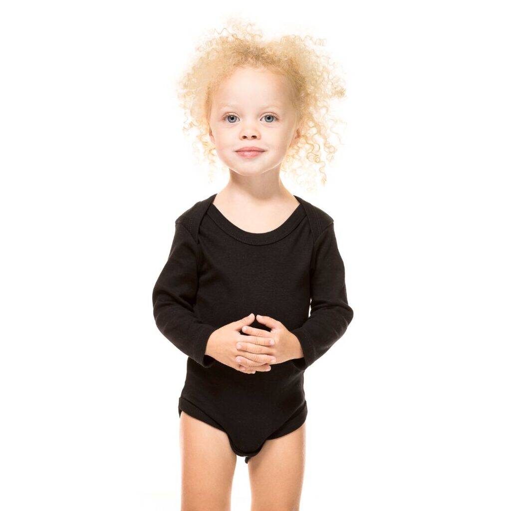 Baby Body med sidesøm, lange ærmer og amerikansk halslukning.