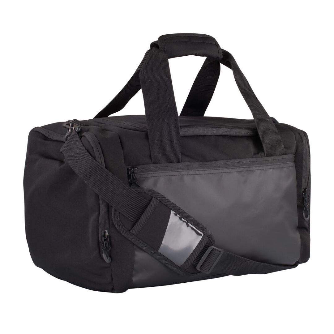 Tasken har en robust aftagelig skulderrem med skulderpude og plads til et visitkort. Gribehåndtagene samles øverst med et polstret omslag med velcro. På hver ende har tasken en lomme med lynlås – et sko/håndklæderum og en netlomme. Bagsiden og forsiden har lynlåslommer.