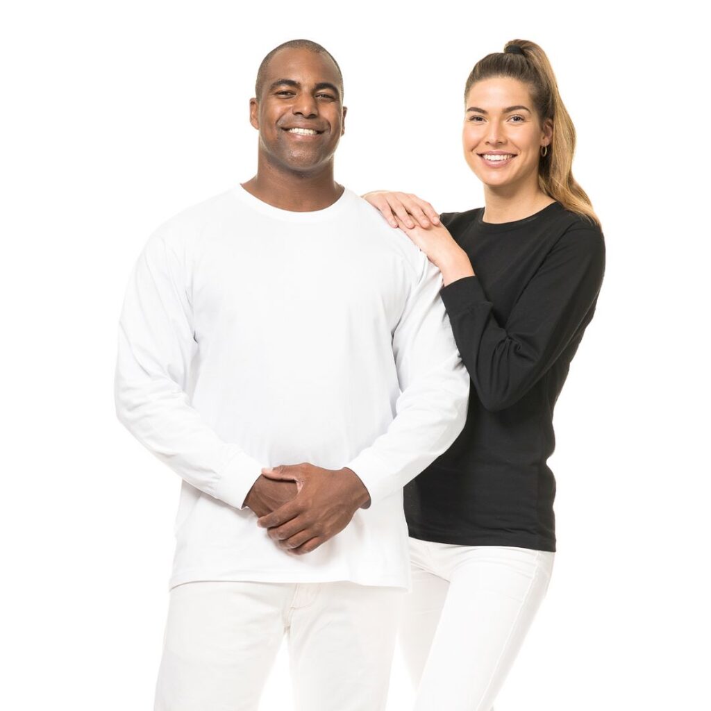 Vores Heavy Luxe er en god kraftig kvalitet, et eksklusivt produkt. En klassisk rundhalset T-shirt med lange ærmer, lycra rib på ærme og i halsudskæring. Rundstrikket, nakkebånd og dobbeltstikninger.