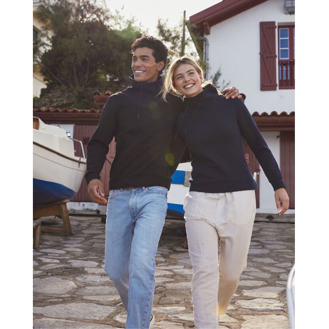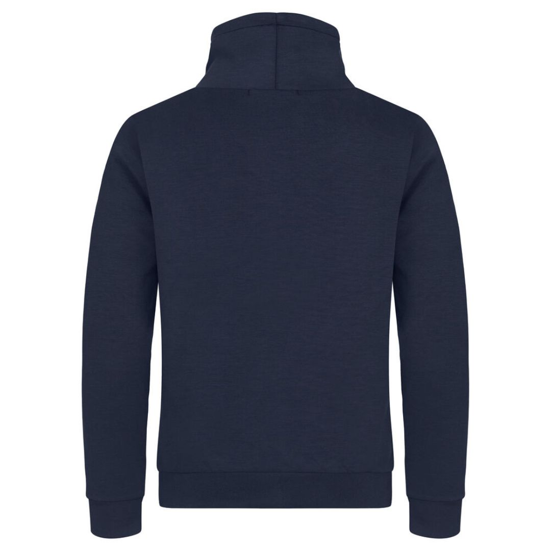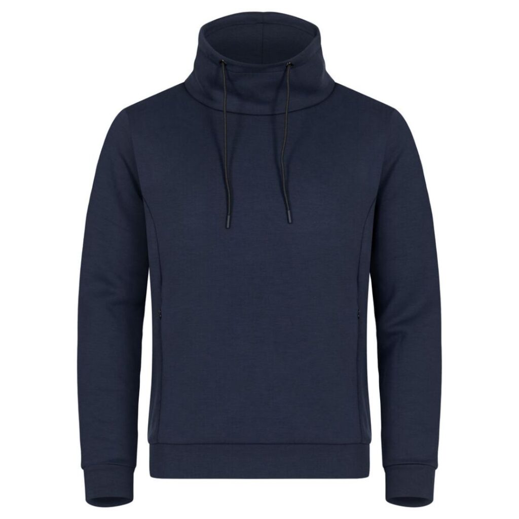Hoddy med høj krave i et blødt materiale. Den har to skjulte sidelommer med lynlås og manchetter og bundkant i skalmateriale. I kraven er der snøre.