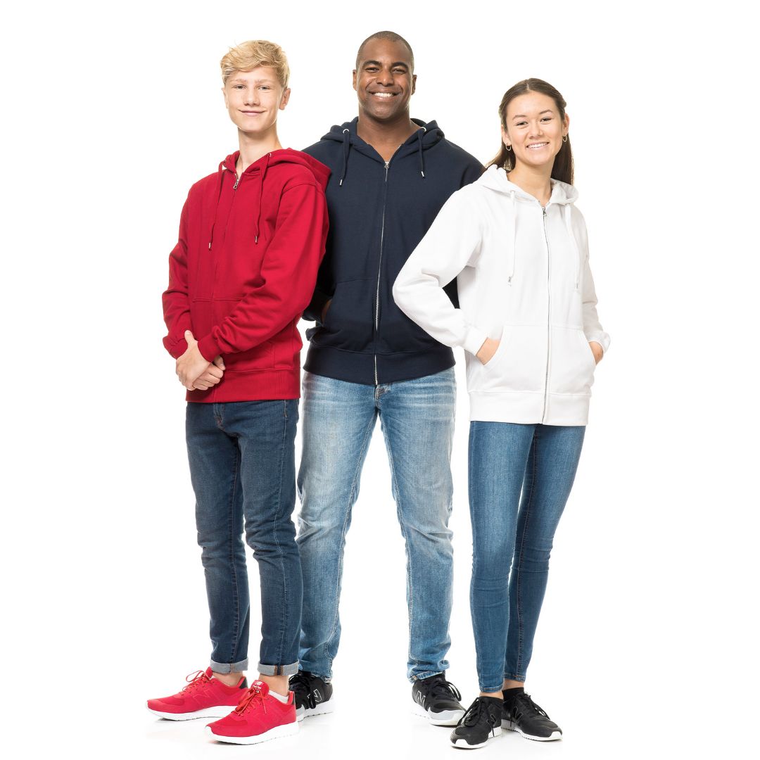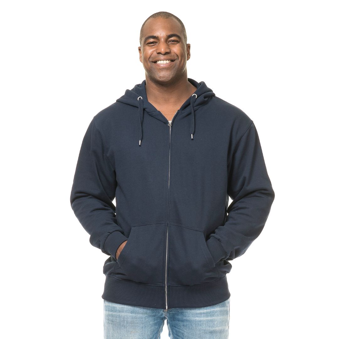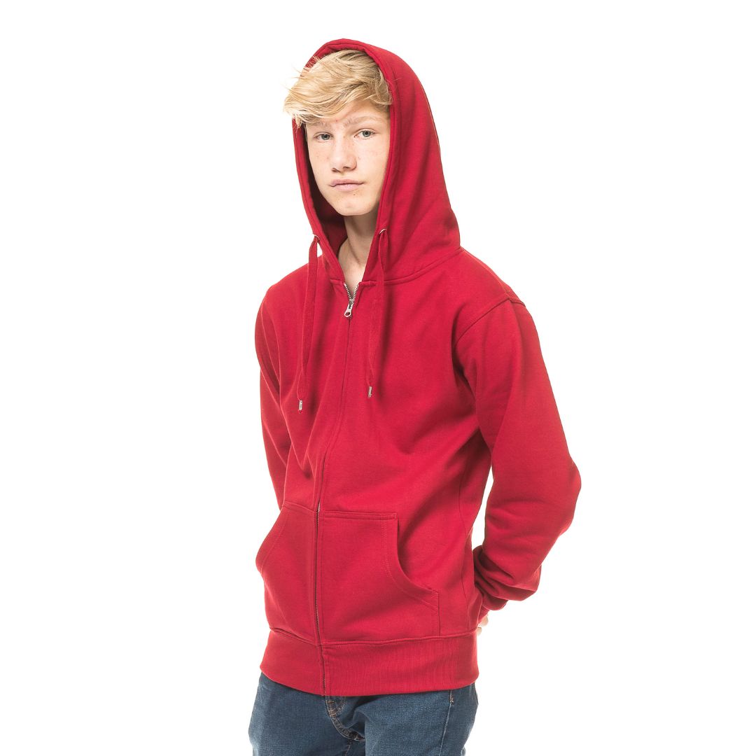 Hoody der er fremstillet i en kraftig kvalitet med en gennemgående metal lynlås og dobbelthætte. Bred lycra rib og en blød børstet inderside. Dobbeltstikninger og sidesøm.