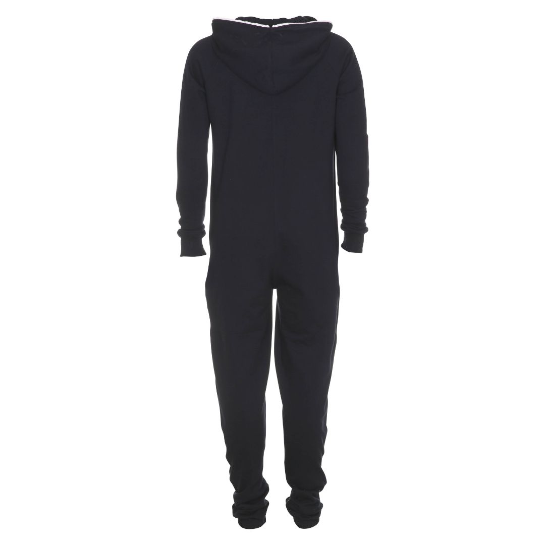 Jumpsuit med en blød børstet inderside og fremstillet i et stof der er kraftig og varm isoli. Der er en ribkant i ærmerne og elastik nederst i benene. Tovejs lynlås som går helt op i hætten på dragten. Foran har den en kængurulomme, afskilt af lynlåsen. Samt to sidelommer med lynlås.