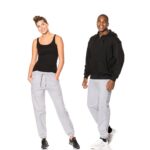 Joggingbukser i kraftig kvalitet med bred lycra rib med elastik og snor i talje, 2 sidelommer med rib, elastik forneden, let børstet inderside og sidesøm.