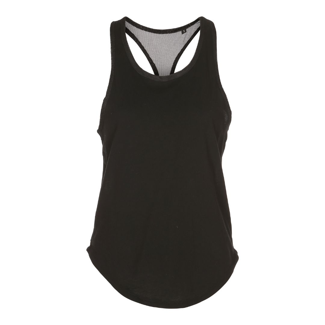 Moderne top med en mesh ryg som giver optimal ventilation. Den er god at træne i.