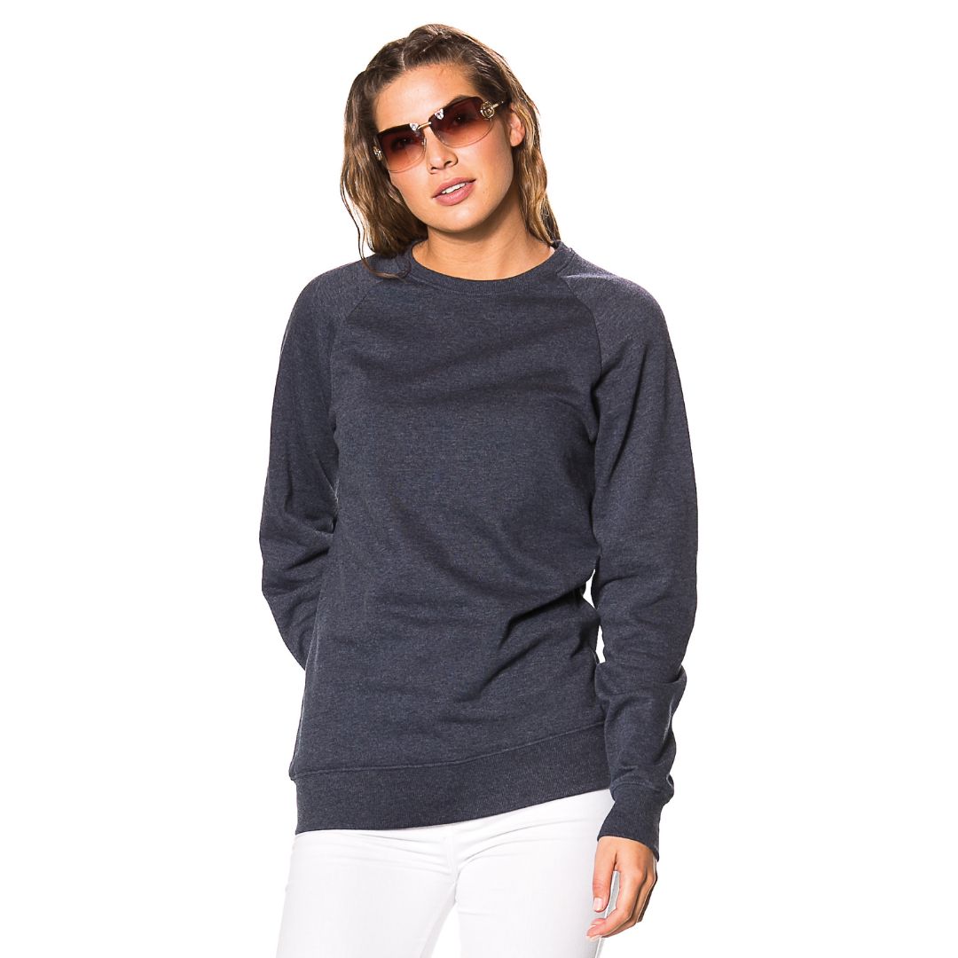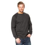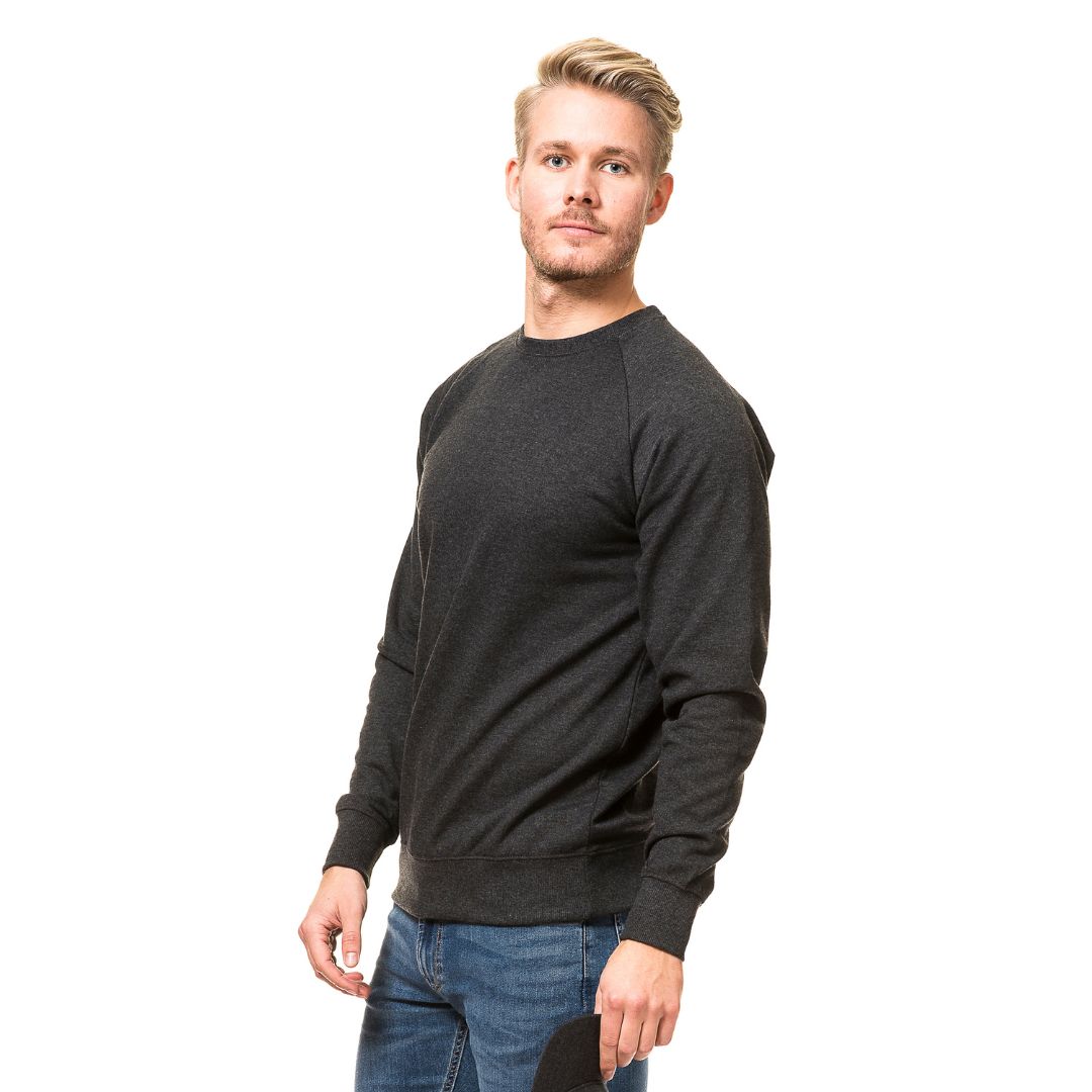 Moderne sweatshirt med reglanæermer som giver en god bevægelsesfrihed. Den har en rund hals og både hals, ærmer og bund er afsluttet med 2×2 ribskant i elastian. Den har en børstet inderside som gør den blød og varm.