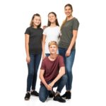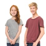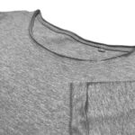 Unisex t-shirt med en halsåbning i et mere råt look, kantkanten er i samme stof som trøjen, men er skåret op for at understrege et rå look. Ærmerne har et ombuk på 2 cm som er hæftet 3 steder.
