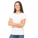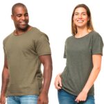 Unisex t-shirt med en halsåbning i et mere råt look, kantkanten er i samme stof som trøjen, men er skåret op for at understrege et rå look. Ærmerne har et ombuk på 2 cm som er hæftet 3 steder.
