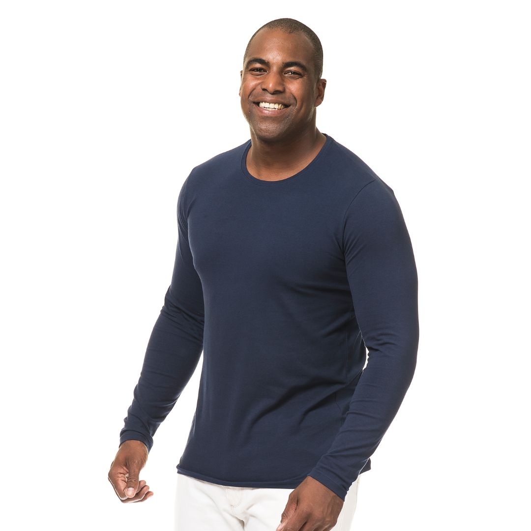 Tætsiddende langærmet t-shirt med rund hals og ærmer med smal rib. Den har en god pasform og en blød og behaglige følelse mod kroppen.