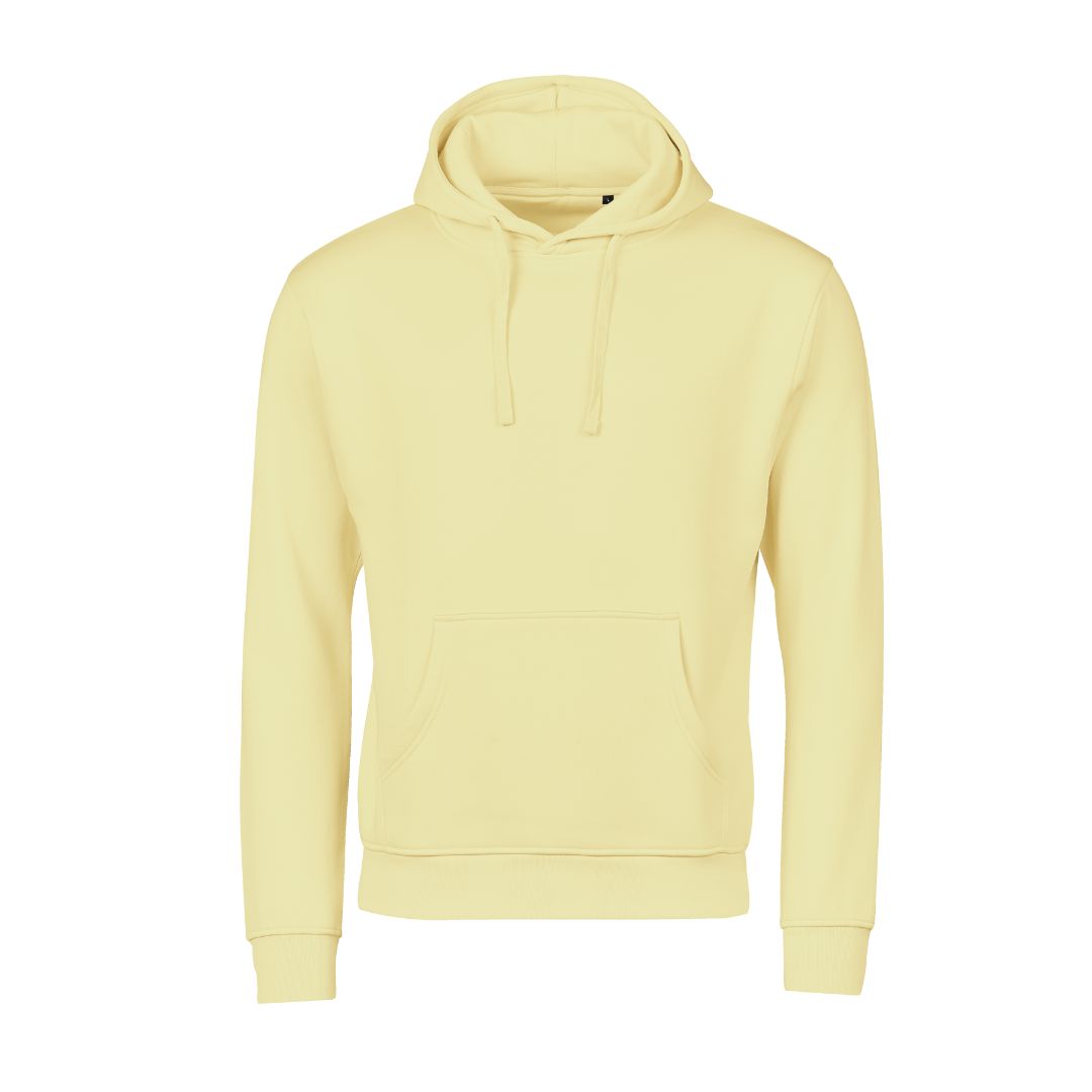 Flot og simpel hoodie uden nakkelabel, så den kan gøres helt unik med logo. Hætte med snøre og stor lomme foran. Helt klassisk hoodie i god kvalitet.