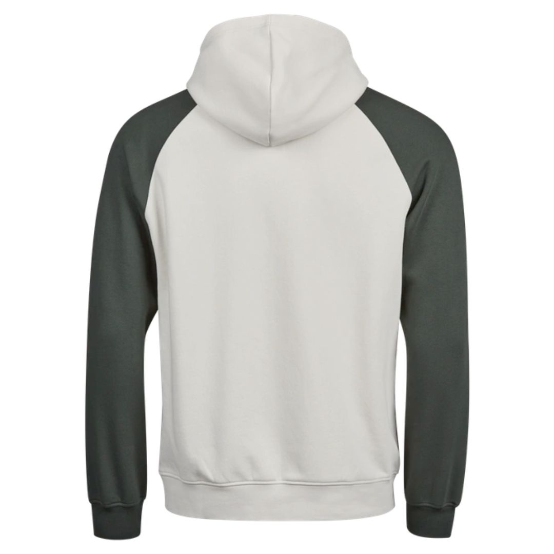 Tofarvet hoody med flotte detaljer. Fremstillet i økologisk bomuld og certificeret genanvendt polyester blanding. Børstet materiale med god holdbarhed og komfort. Holder farven flot og har hætte med snøre, samt en kængurulomme foran.