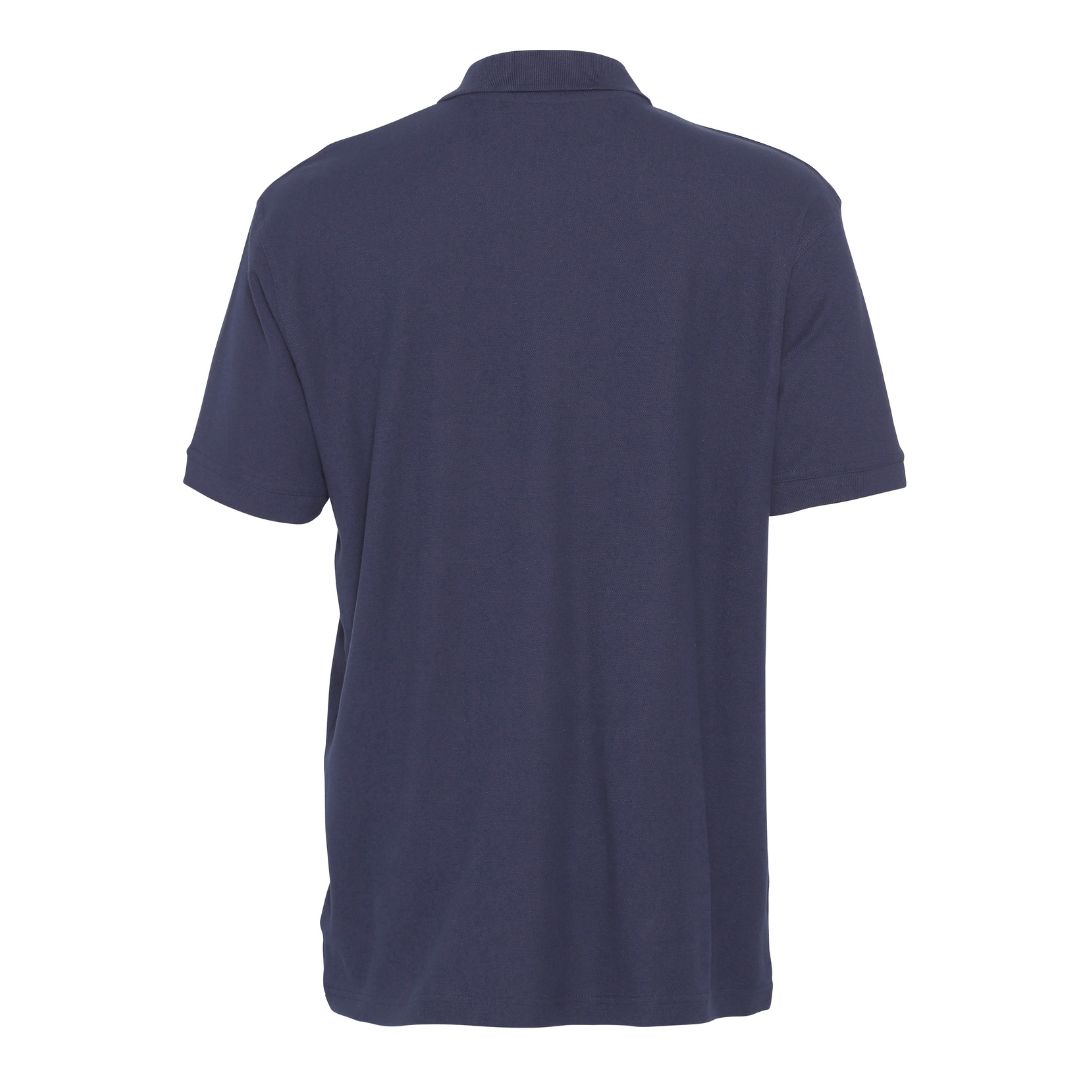 Klassisk polo med nakkebånd der går helt ned til stolpelukningen, som lukkes med 3 knapper. Kraven er lavet i 1×1 bomuldsrib, samt der ved ærmerne er ribkant.
