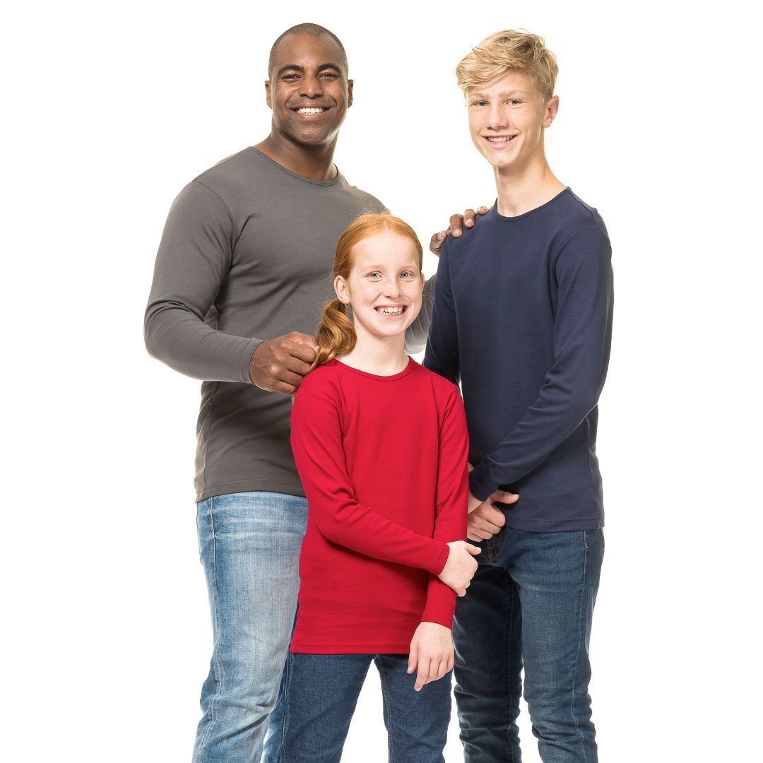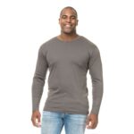 Tætsiddende T-shirt med lange ærmer og rund halsudskæring med smal rib. Dobbeltstikninger og sidesøm.